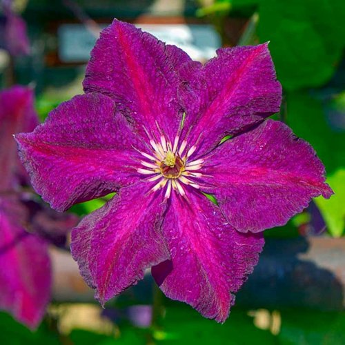 Сорт отличается насыщенно-фиолетовыми бархатистыми цветками диаметром 10–12 см. Цветение начинается с середины июня и длится до начала сентября, при тёплой осени отдельные цветки могут радовать глаз и в октябре. Цветы распускаются на побегах текущего года, образуя плотное и обильное цветение, полностью покрывающее опору.